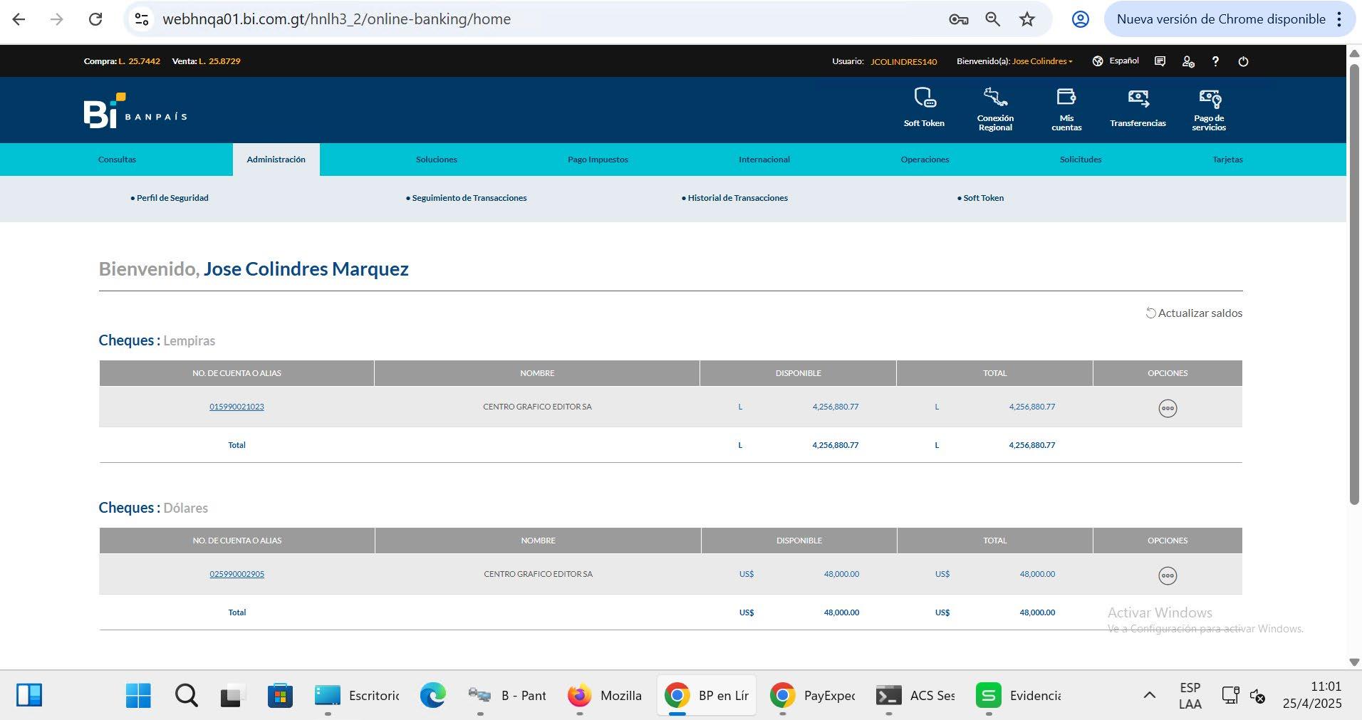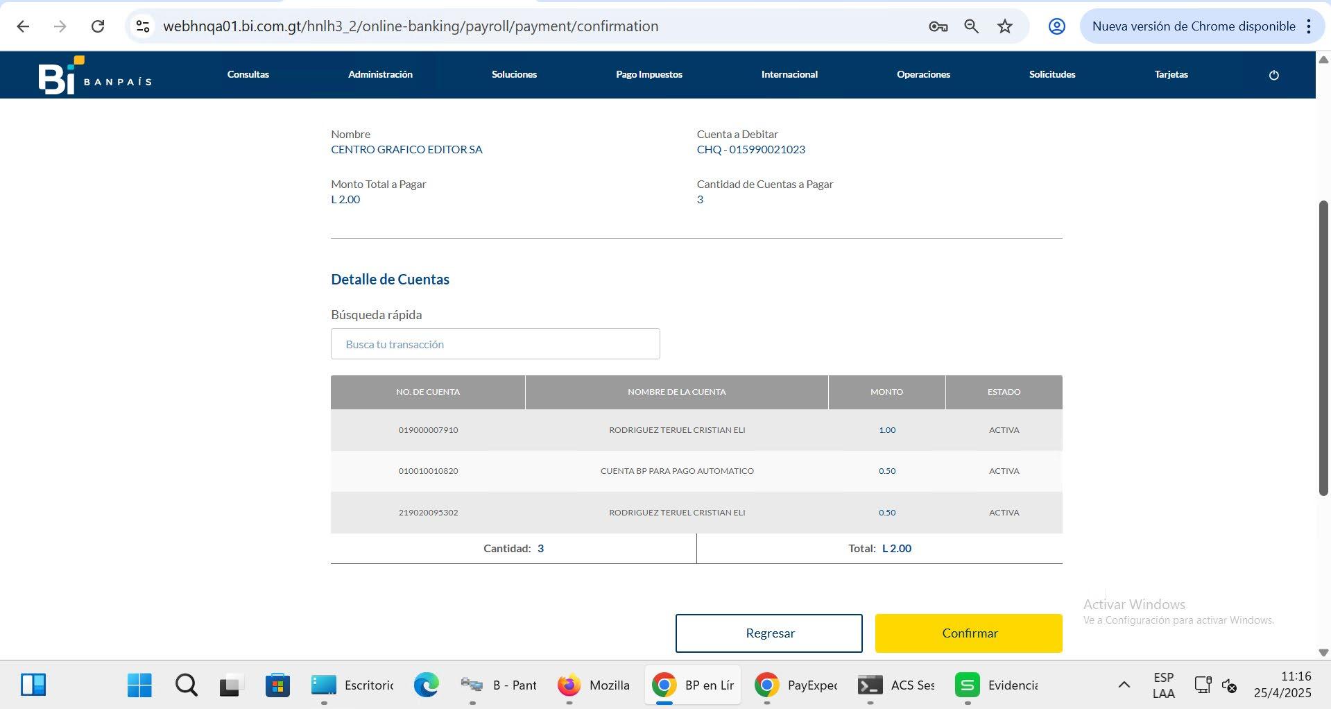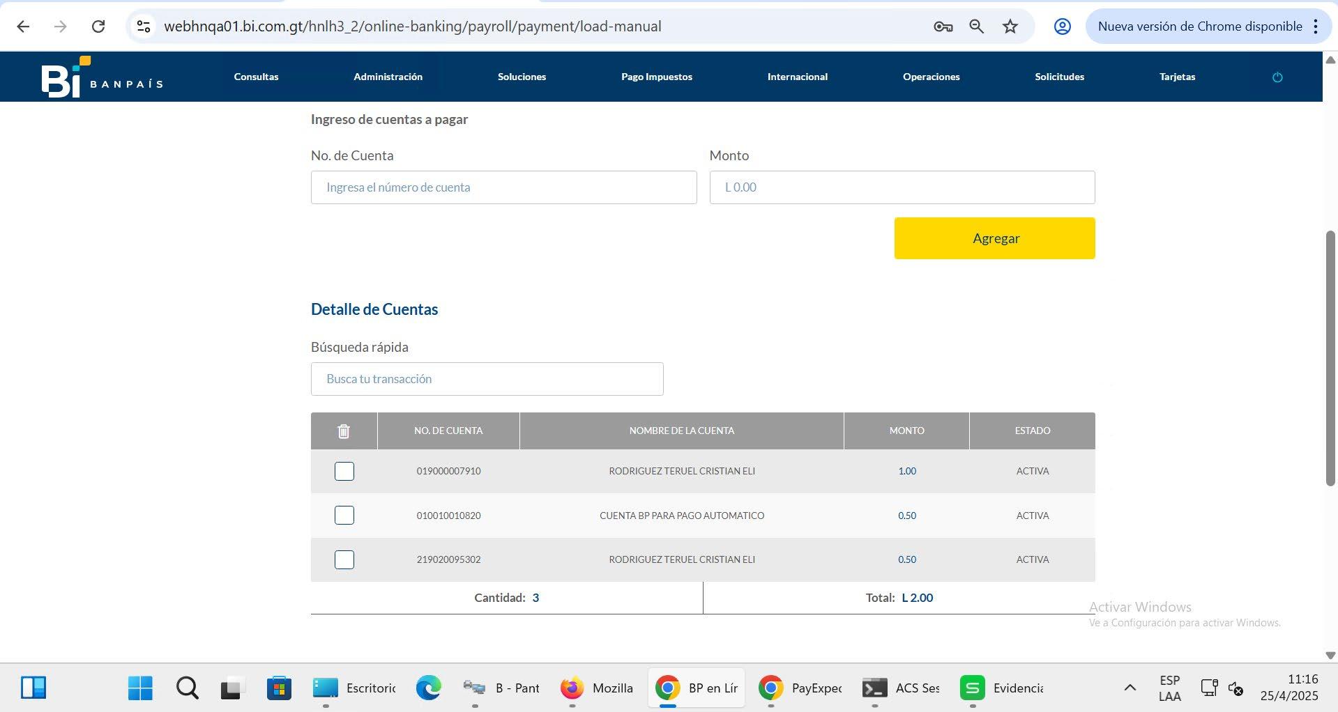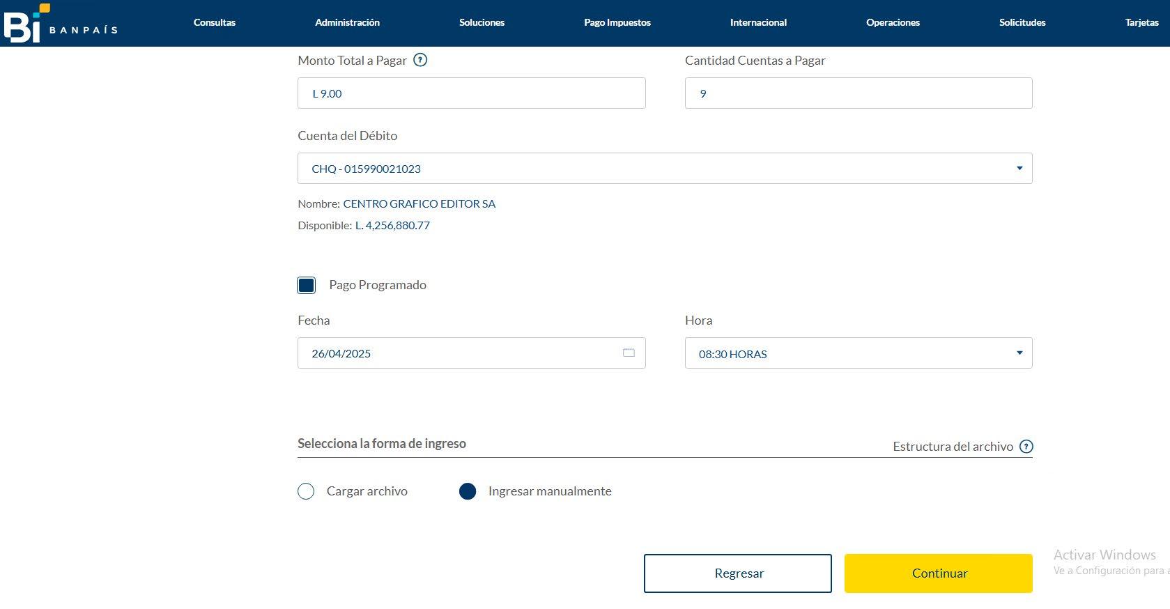 Completa los datos e ingresa el monto y cantidad de cuentas a pagar, así como la cuenta a debitar