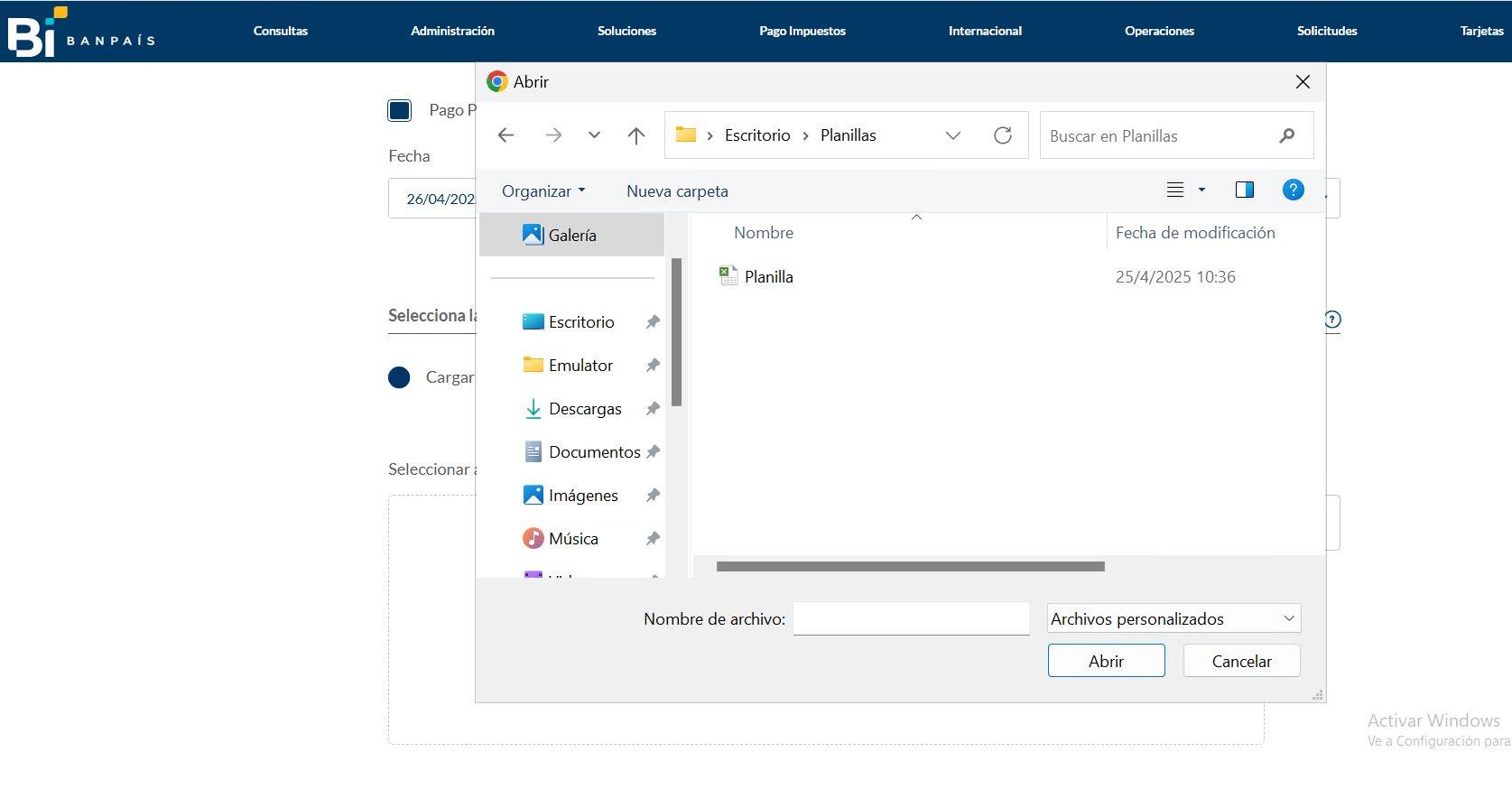 Verás una ventana desde la cual podrás seleccionar el archivo que deseas cargar.