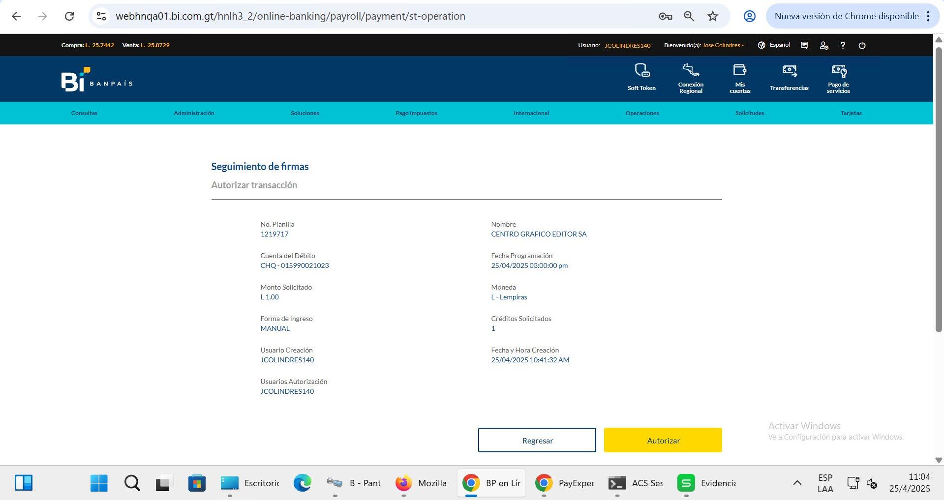 Podrás visualizar toda la información de la planilla, haz clic en Autorizar.