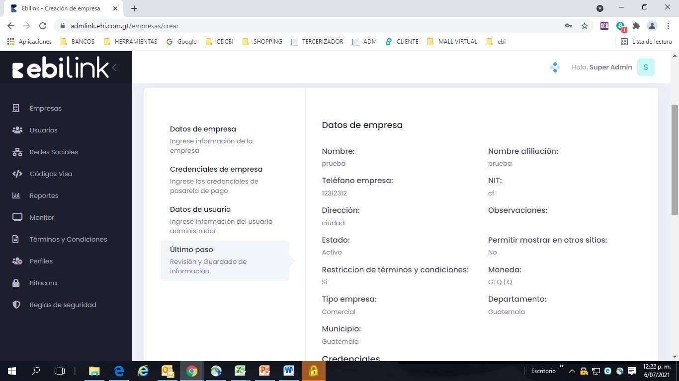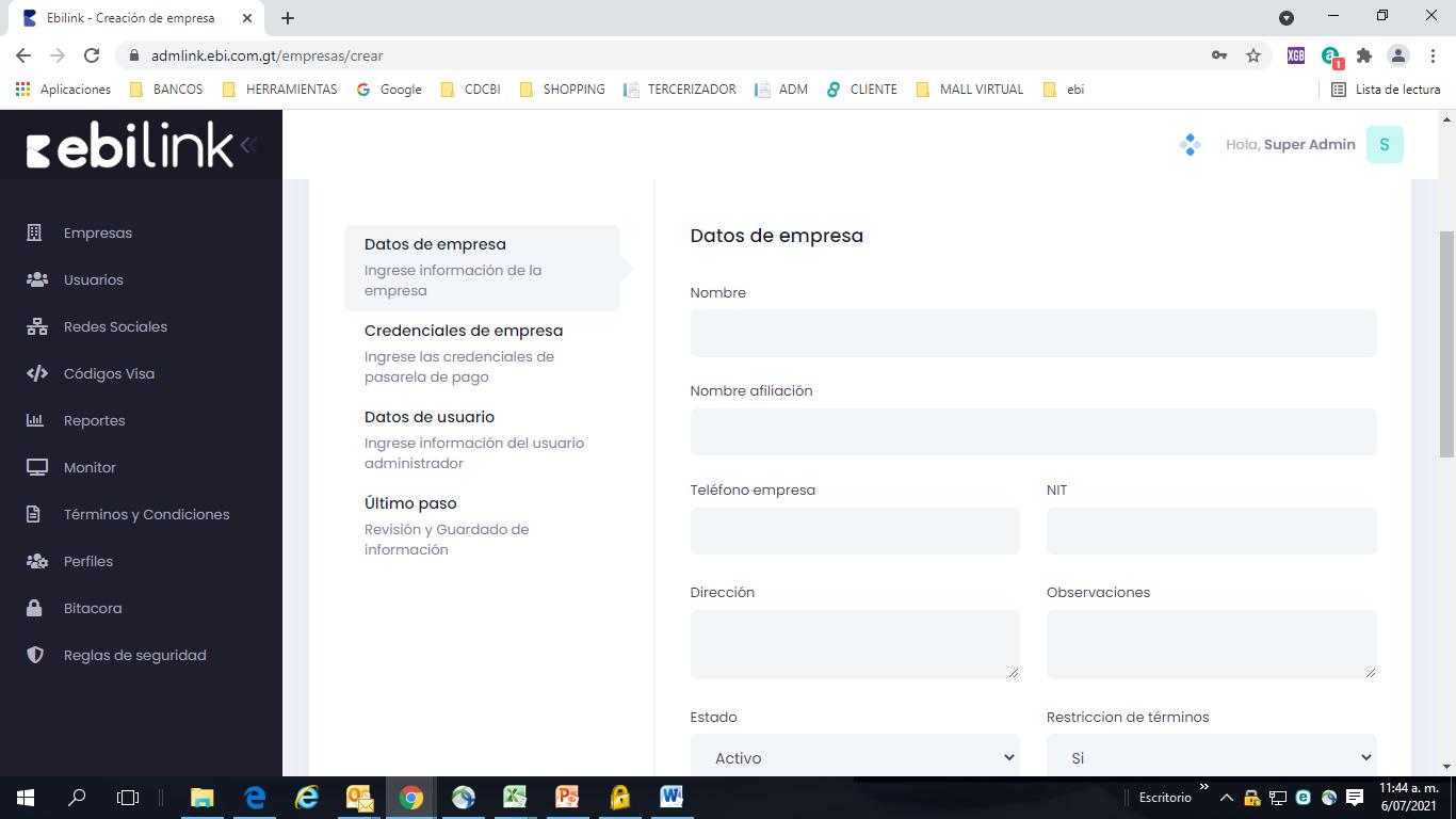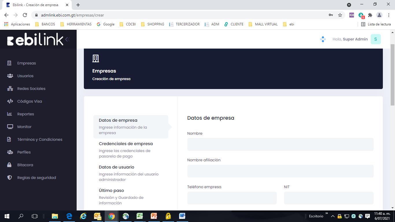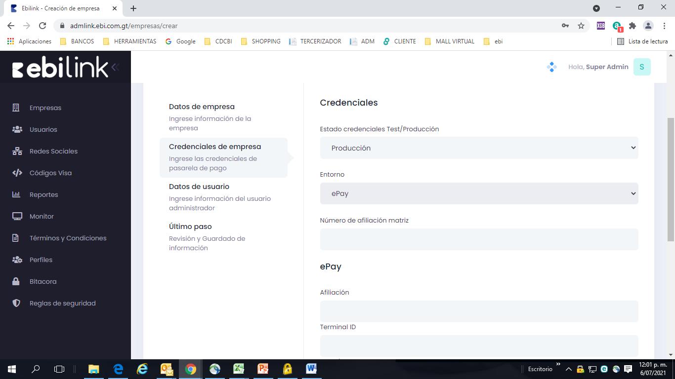 8. ebi link creación de empresas 01 Credenciales de empresa