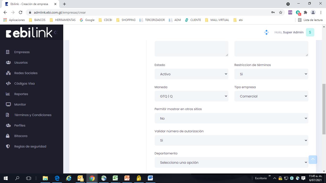 Departamento: se coloca el Departamento de Guatemala en el que esta la empresa que viene en el archivo “Credenciales ebi” adjunto al caso de CRM
