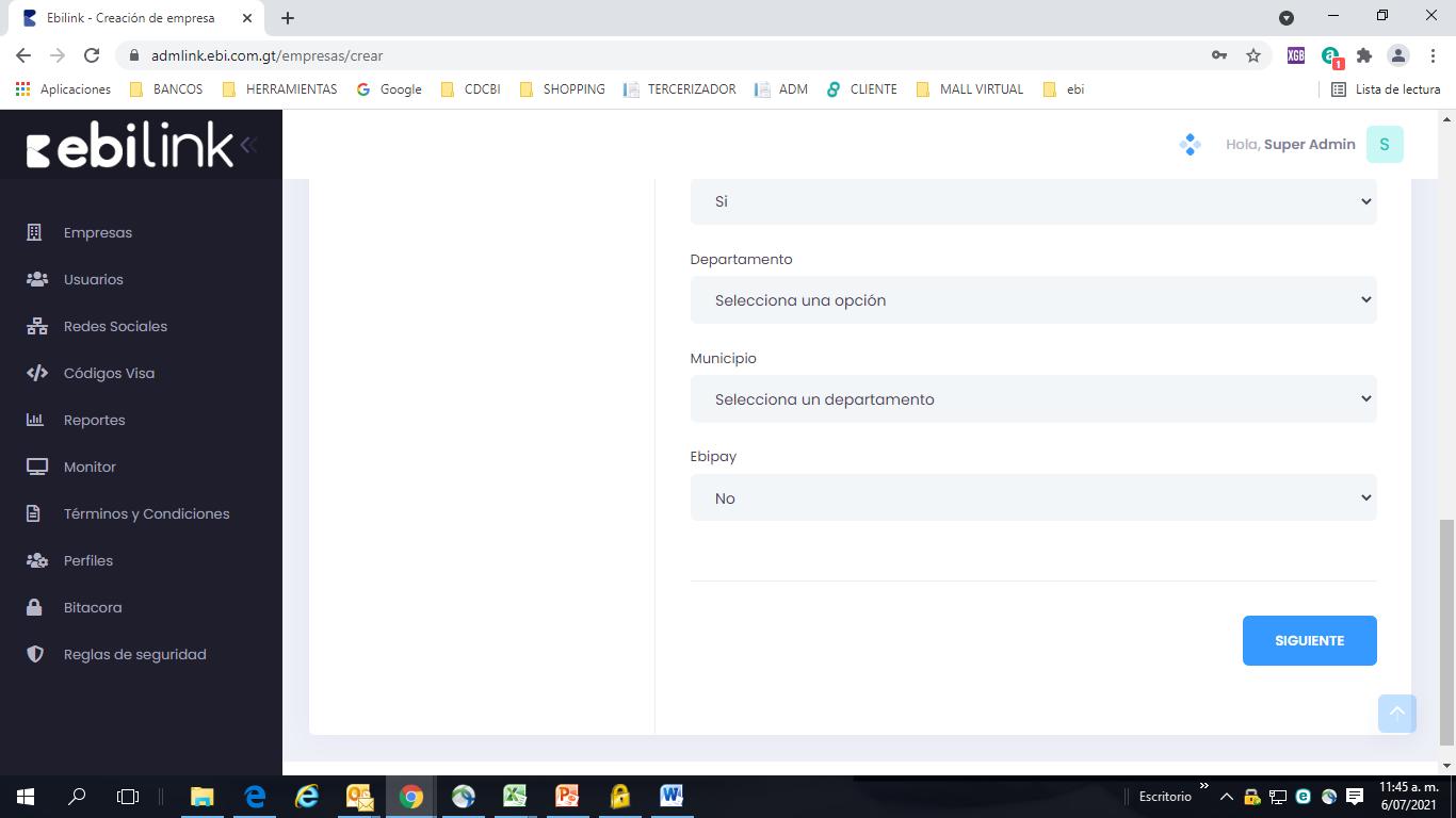 Municipio: se coloca el Municipio de la empresa que viene en el archivo “Credenciales ebi” adjunto al caso de CRM