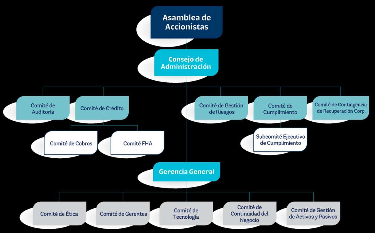 Durante el año 2022, continuamos fortaleciendo e implementando buenas prácticas de Gobierno Corporativo, dando cumplimiento a lo establecido en el Reglamento de Gobierno Corporativo, anexo de la resolución emitida por la Junta Monetaria, JM-62-2016, e implementando estándares internacionales de buena gobernanza, reflejando nuestro firme compromiso de mejora continua en nuestras prácticas de negocios, transparencia, competitividad y certeza en la administración.
