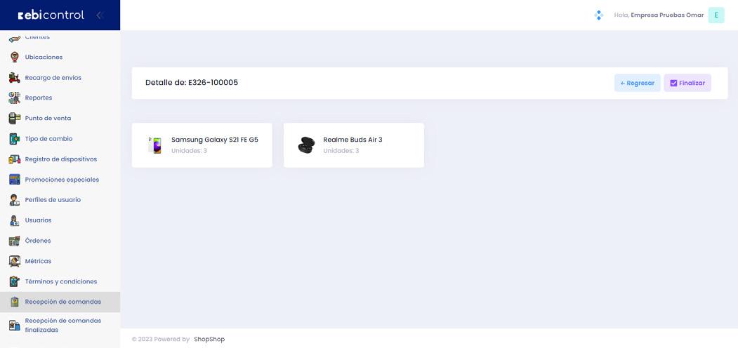 Recepción de comandas finalizadas