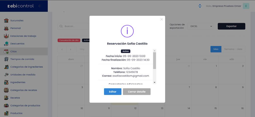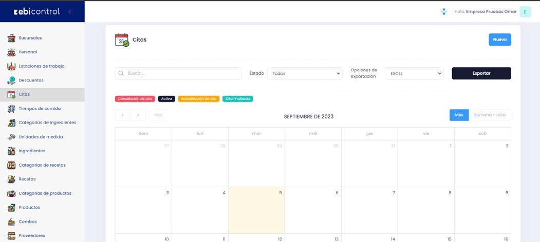 En función de los filtros aplicados es posible generar un reporte de citas en formato PDF o Excel