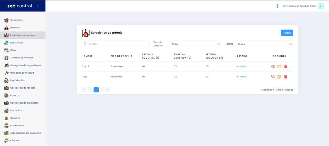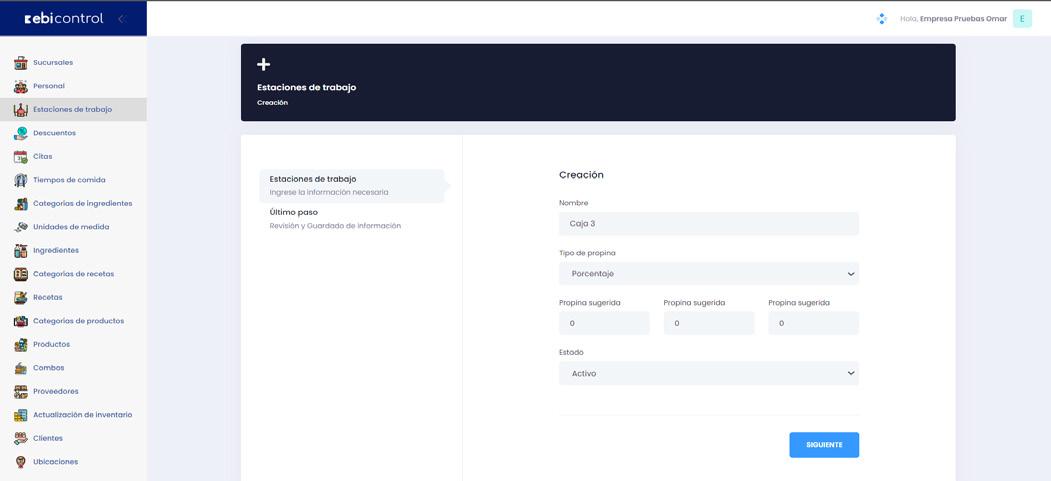 Si el comercio lo necesita puede registrar estaciones de trabajo, estas hacen referencia a las mesas de un restaurante, estaciones en una estética, etc.