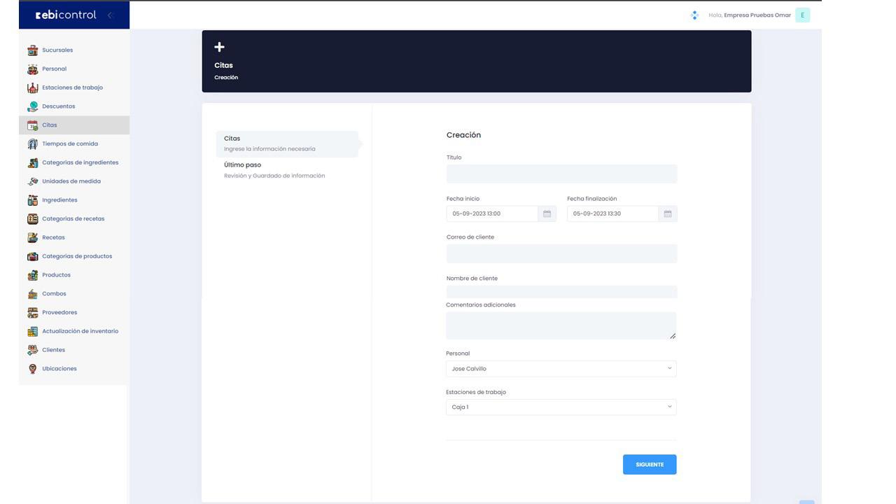 Se podrán generar citas, si el comercio cuenta con alguno de los Módulos asociados se podrán realizar asignaciones a los mismos.
