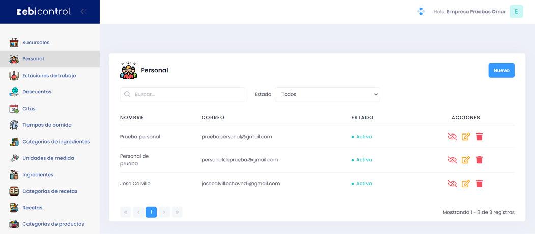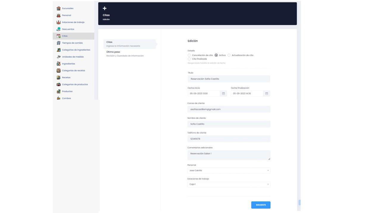 Todos los registros realizados en personal serán utilizados en la generación de citas o ventas.