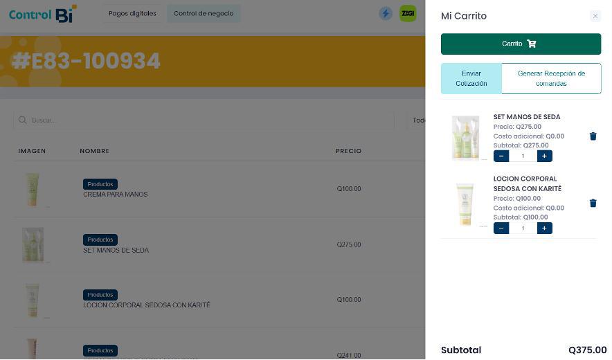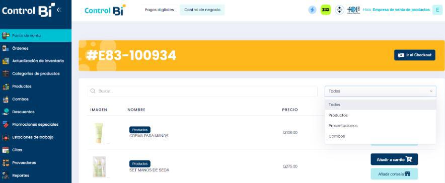 • Cada producto seleccionado se agregará automáticamente al carrito con su precio correspondiente.