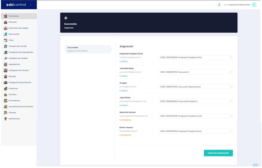 Los comercios pueden asignar a los usuarios a las distintas sucursales que se hayan registrado.