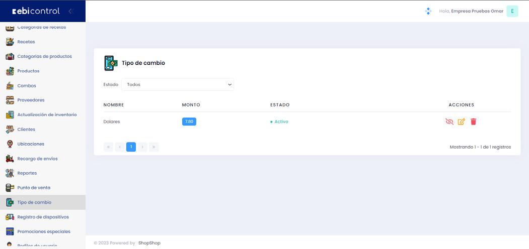 Si el comercio no cuenta con tasa de cambio y tiene doble moneda no aparecerá la opción de pago en dólares.
