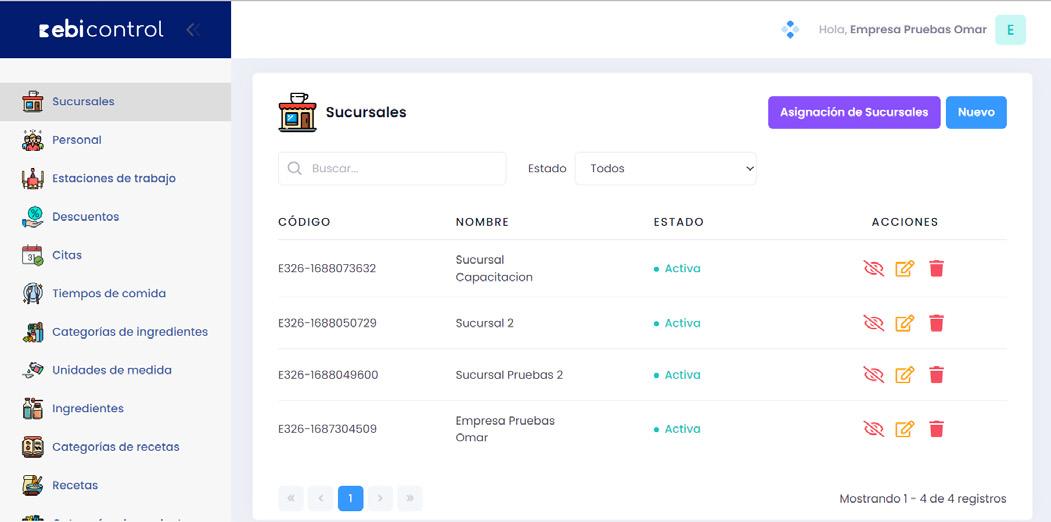 La asignación de sucursales es utilizada para el débito de inventario Debe de tener presente que todas las reglas de inventario afectaran únicamente en la sucursal que se encuentra asignada el usuario