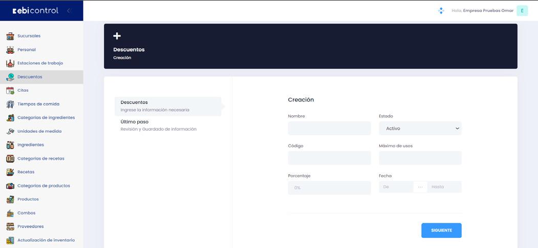 Creación de descuentos