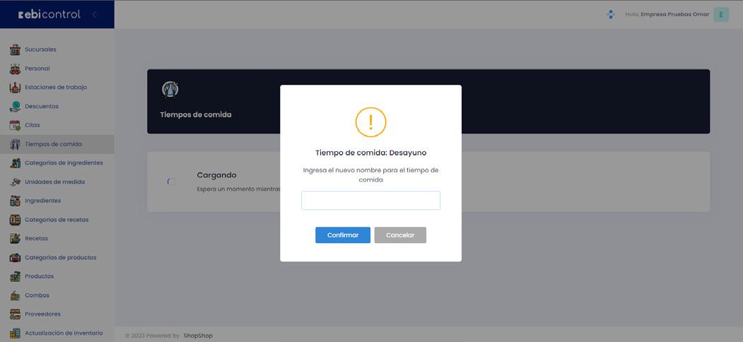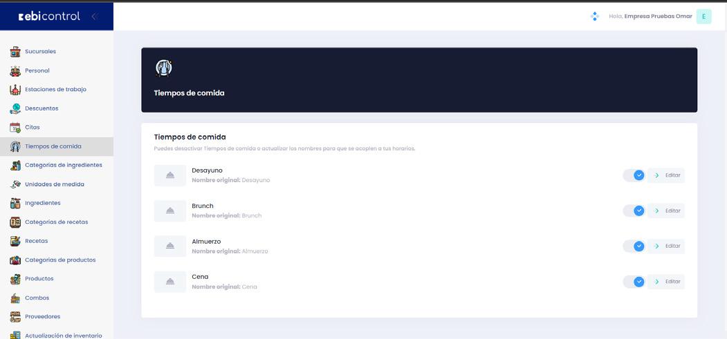 El comercio puede personalizar los tiempos de comida a los cuales puede asociar los registros generados en los Módulos de Recetas y Combos.