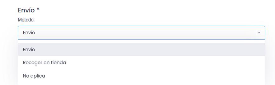 • No aplica: Para ventas que no requieren envío o entrega especial.