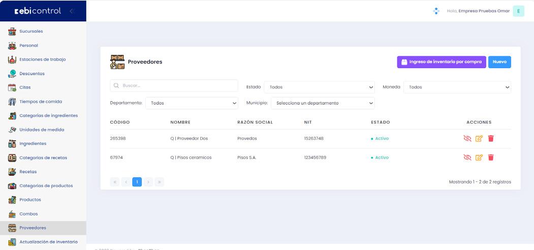 Los proveedores se utilizan para realizar ingreso de inventario por compras.