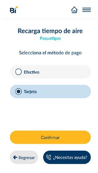 Presiona el botón Confirmar para avanzar a la pantalla de selección de tipo de pago.
