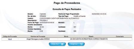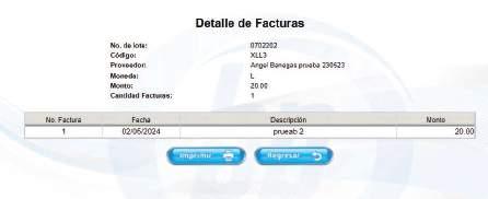 2. Al seleccionar el número de lote se detalla la descripción del pago realizado.
