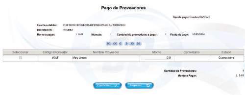 • Eliminar: Para poder eliminar la carga de pago a proveedor.
