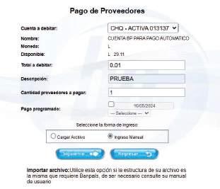 Opción que permite hacer la carga de archivo para pago a proveedores.