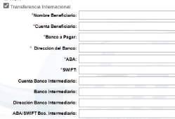 • En caso de ser Transferencia Internacional completa los siguientes campos: