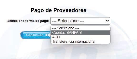 Diferentes formas de pago: Crédito a cuentas Banpaís, transferencias interbancarias o transferencias internacionales.