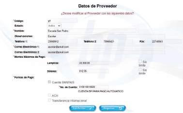 7. Presiona el botón confirmar para grabar los cambios realizados previamente, una vez realizada esta acción habrás grabado los cambios y ya tendrás actualizado tu proveedor.