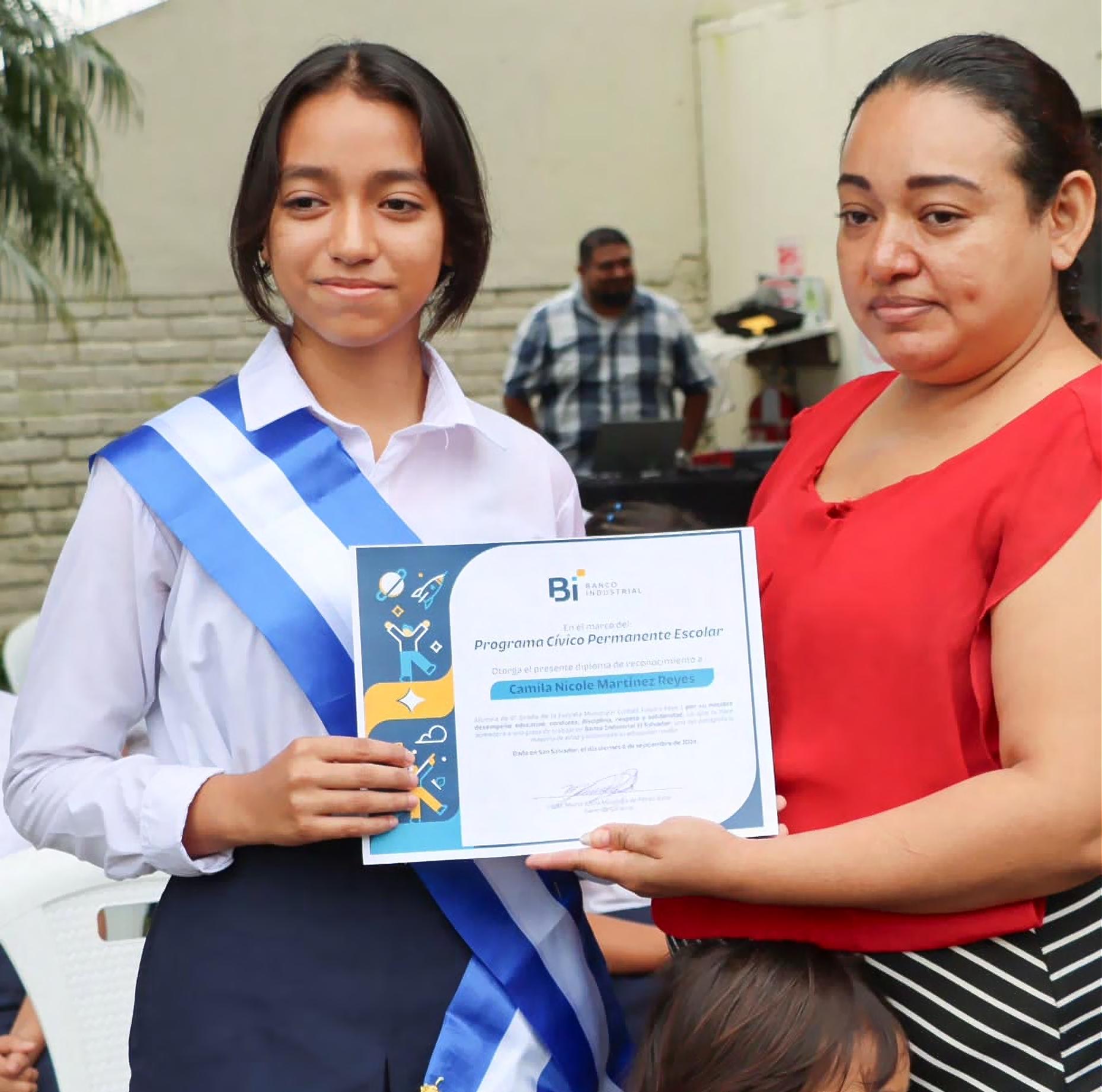 recibir un homenaje, Banco Industrial El Salvador, S.A. da seguimiento a su rendimiento escolar, para contar con la oportunidad de optar a una oferta de trabajo al culminar su educación media.