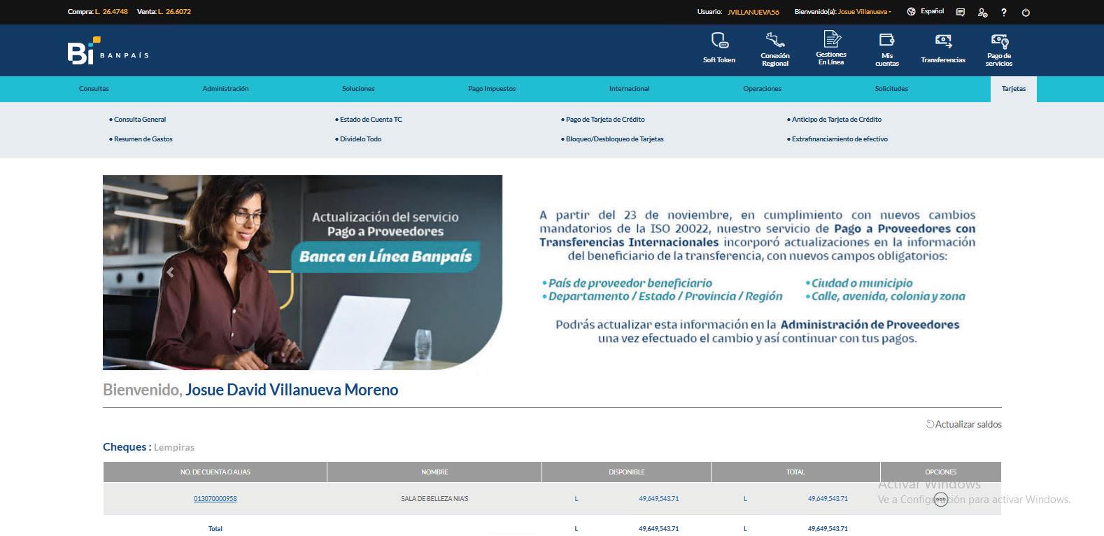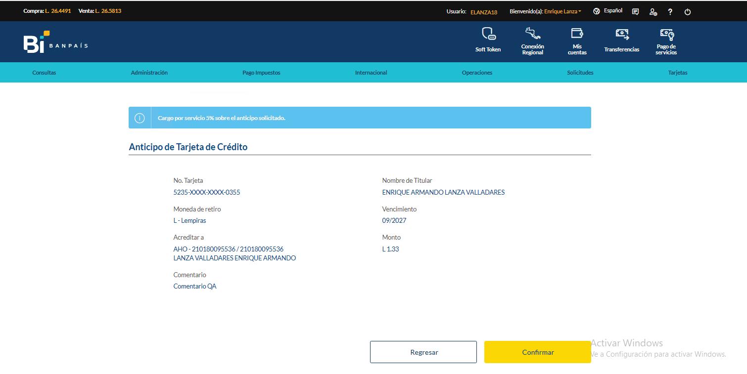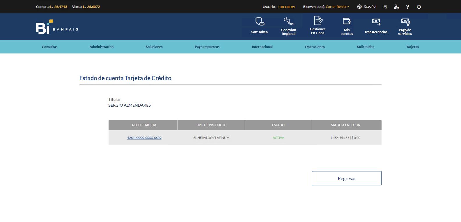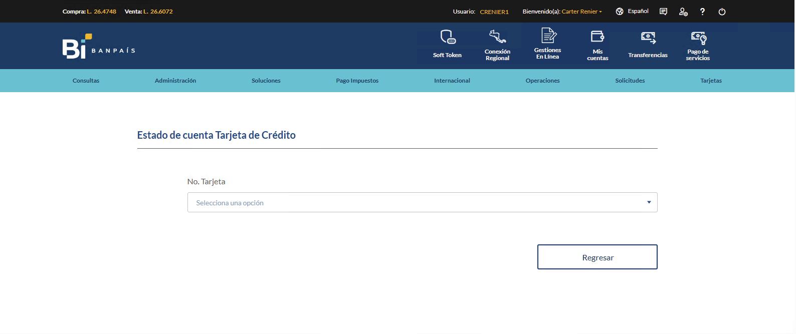 desde la Banca en Línea Banpaís Pago de Tarjeta de Crédito