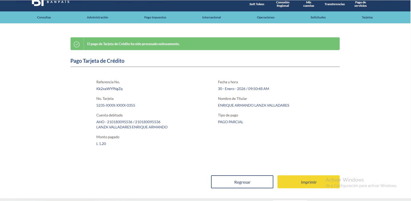 ¡Listo! Has realizado así el pago de tu Tarjeta de Crédito Banpaís.