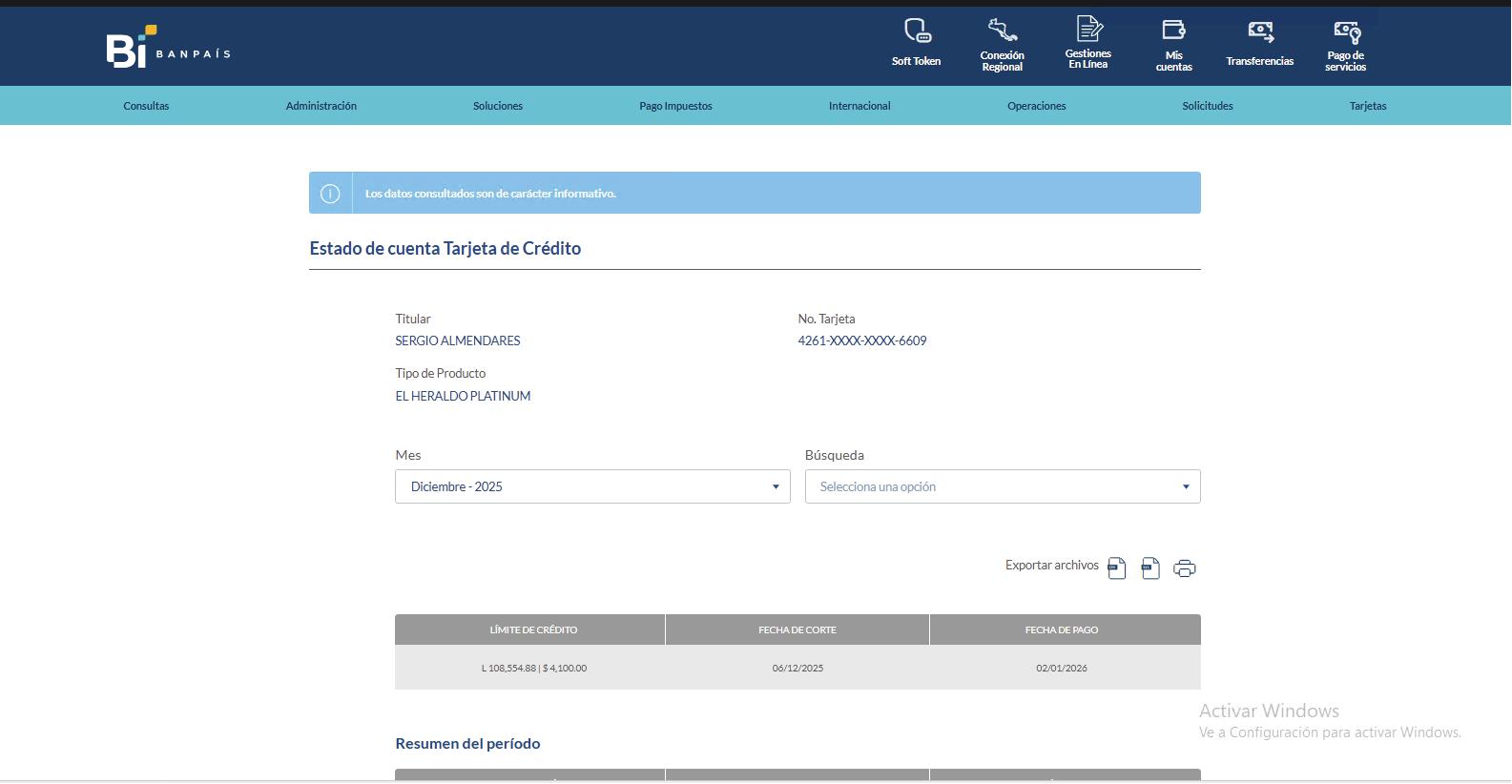Al ver el estado de cuenta, tienes la opción de exportarlo en Excel o imprimirlo en PDF.