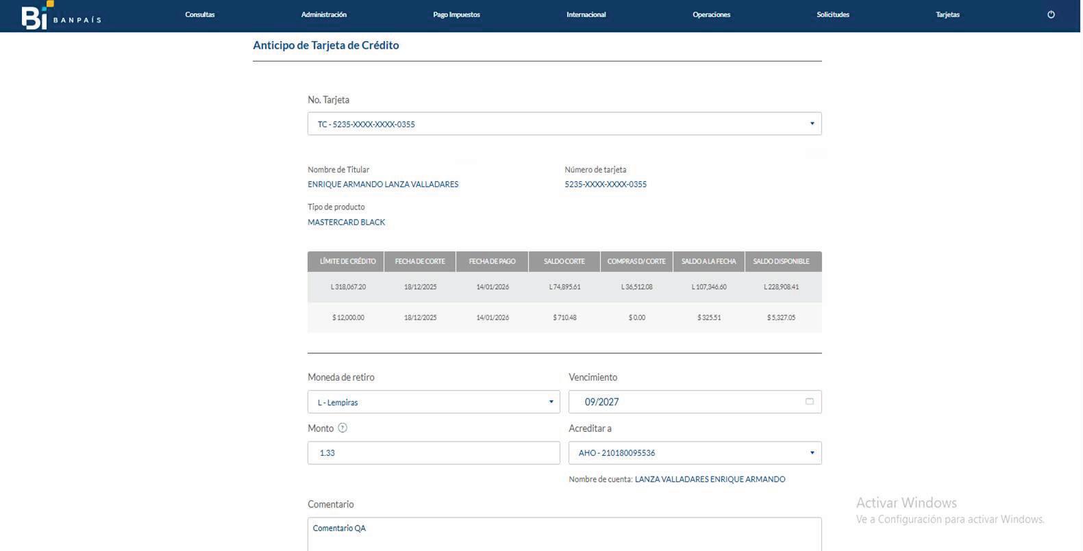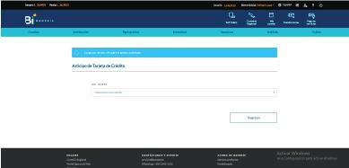 Desde el menú Tarjetas, haz clic en Anticipo de Tarjeta de Crédito.