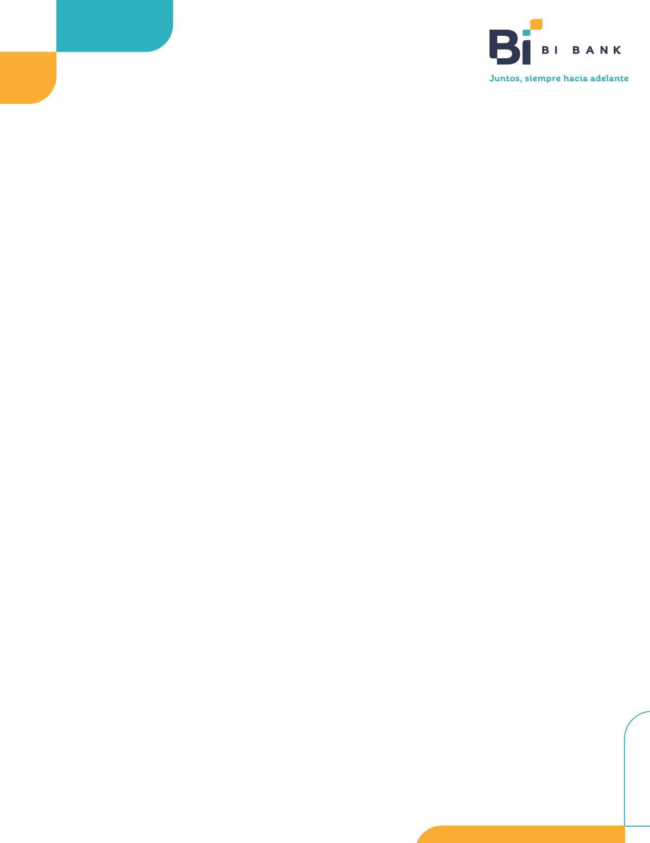 En Bi Bank S.A., queremos que conozca la manera en que recopilamos, usamos, compartimos y protegemos su información. Cuando interactúa con Bi Bank S.A., a través de nuestras sucursales, oficinas, sitios web, aplicaciones para dispositivos móviles, productos y servicios, otorga su consentimiento para que usemos la información que recopilamos o que usted proporciona de acuerdo con los términos de este Aviso de Privacidad.