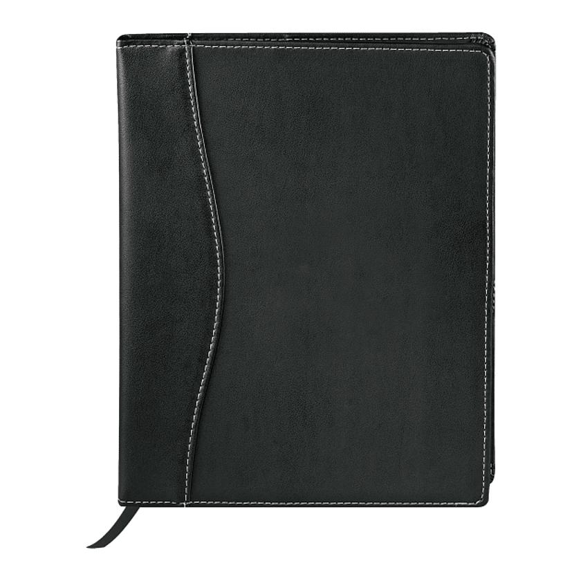 The 7.5” x 9.5” FSC® Mix Hampton JournalBook is an elegant bound journal with a cover constructed from durable UltraHyde materials. It includes 90 sheets of 7” x 9” cream lined FSC® Mix paper with refills available to order separately. The Hampton JournalBook® contains a business card pocket, has a builtin ribbon page marker, and features a double pen loop with a secure locking closure for added privacy.