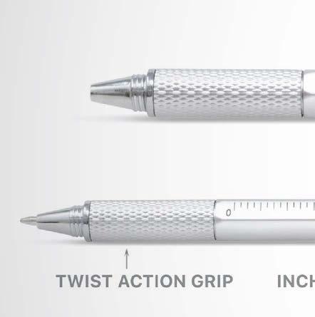•Level, two rulers, screwdriver bits, stylus tip, and pen all in one.