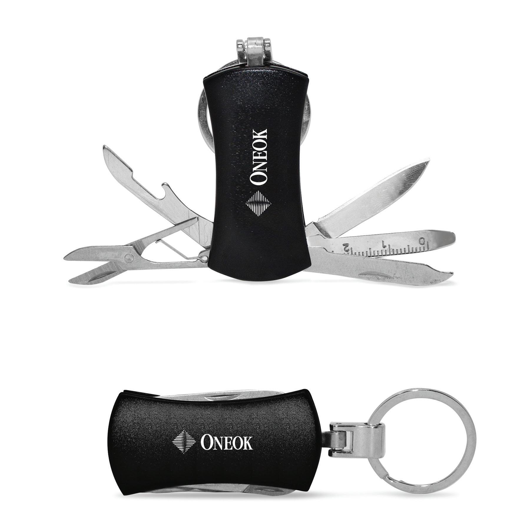 • Micro scissors, knife, bottle opener, ruler blade with slotted screwdriver head and file.