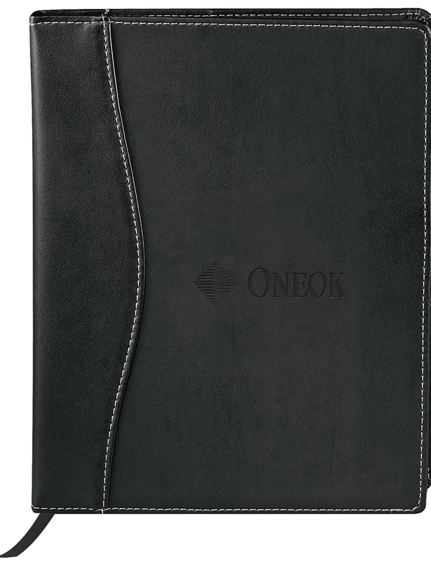 The Vienna Heathered Zippered Padfolio with FSC® Mix Paper features a smooth polyurethane front cover with a heathered, textured back cover. Its convenient design offers a front pocket with an integrated elastic pen loop, making it easy to keep your writing instrument in close reach. Additional features of this zippered Italian UltraHyde padfolio include a plastic smartphone pocket, multiple business card slots, a stretchy elastic cord for securing extra items, and an interior document pocket. This item includes a 11.5” x 8.5” FSC® Mix writing pad. Pen not included.