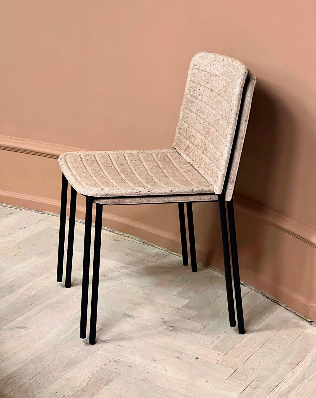 Opposite Page // Flax Stacker Chair by PLEASE WAIT to be SEATED , constructed in natural flax, an environmentally friendly material with a low carbon footprint