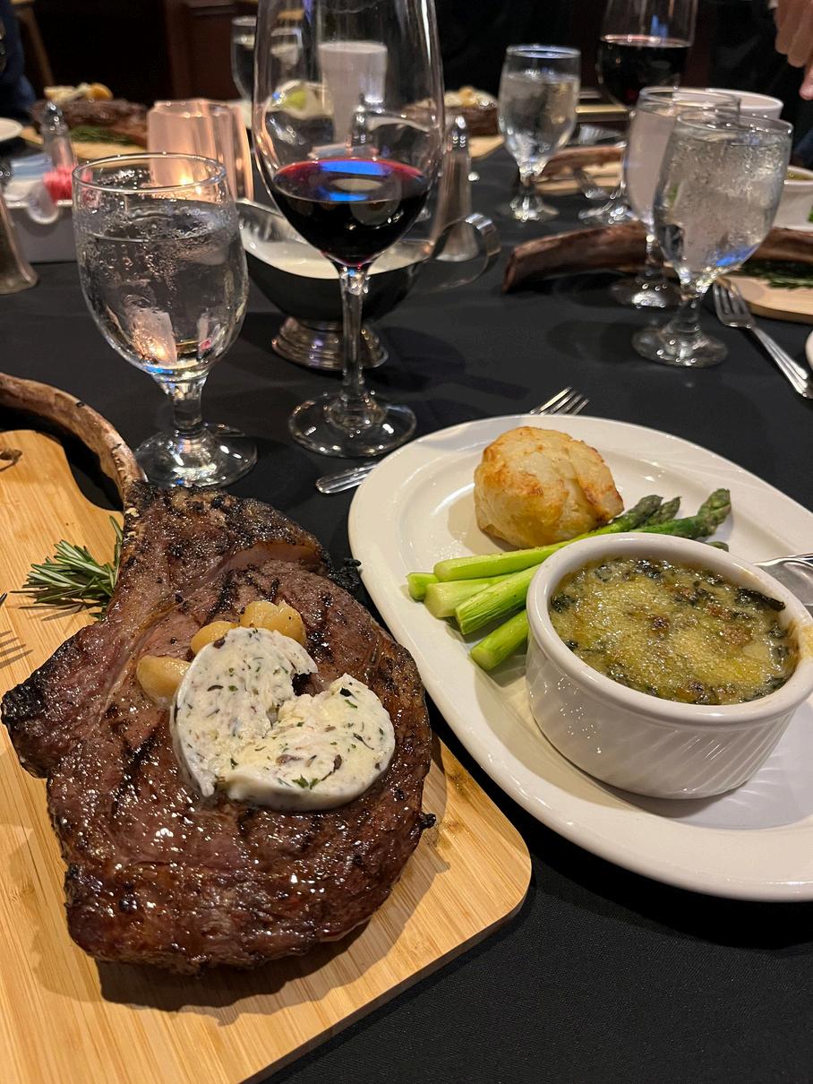 12-oz. Ribeye + 3 Jumbo Fried Gulf Shrimp + Au Jus + Horseradish + Choice of Two Sides