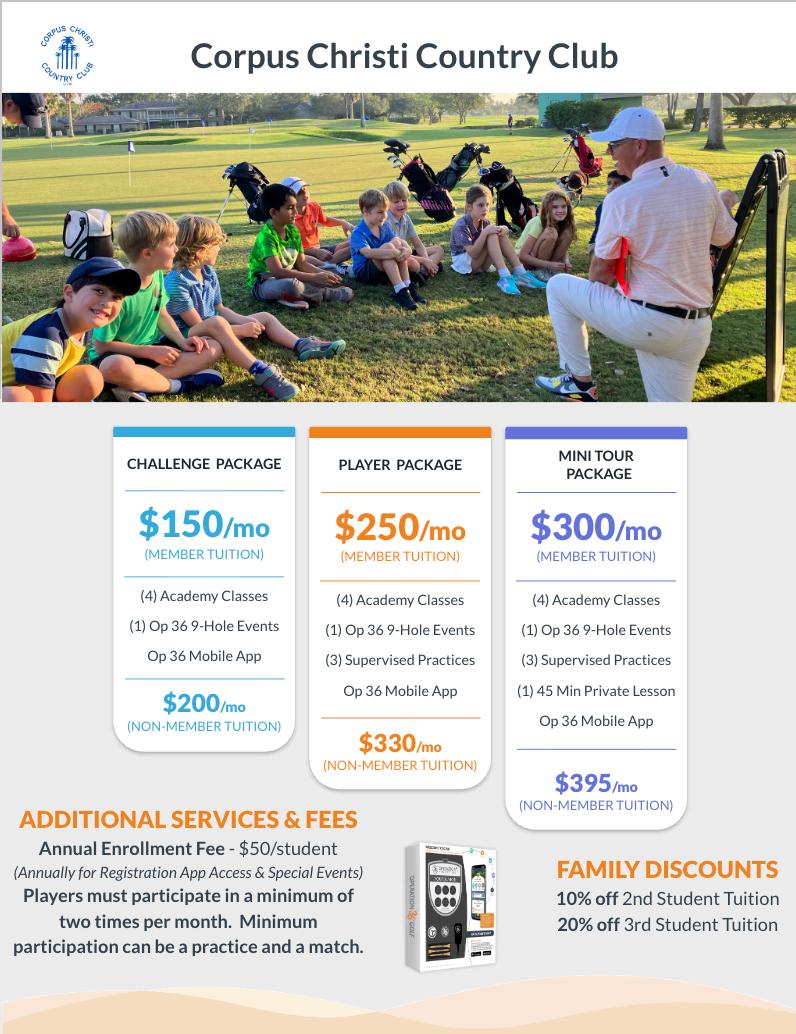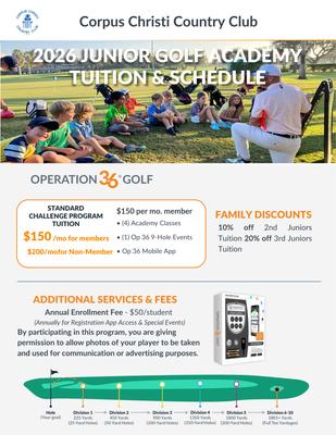 Corpus Christi Country Club 2026 JUNIOR GOLF ACADEMY TUITION & SCHEDULE STANDARD CHALLENGE PROGRAM TUITION