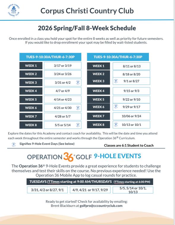 2026 Corpus Christi Country Club Golf Event Schedule 2/5