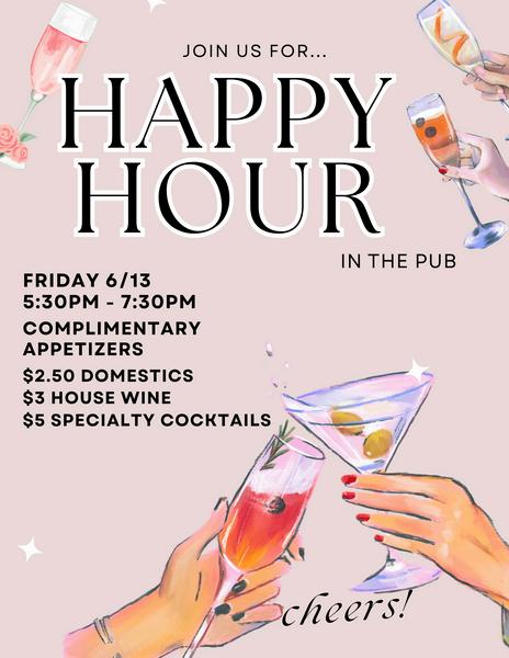 Join us for happy hour in the pub, come and enjoy cocktails and great memories!