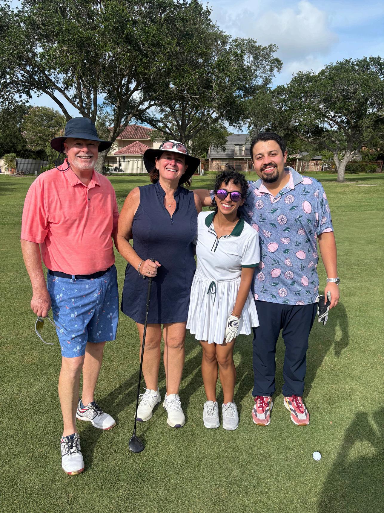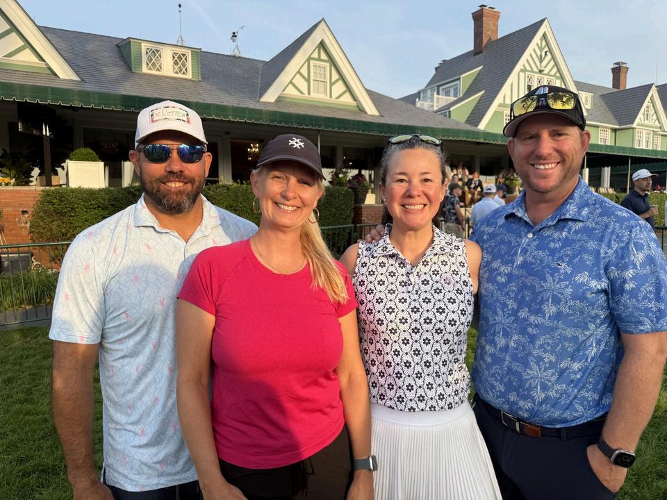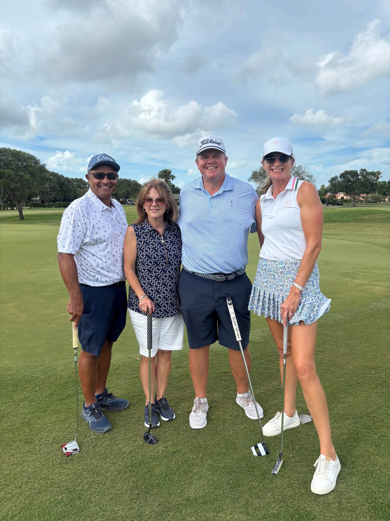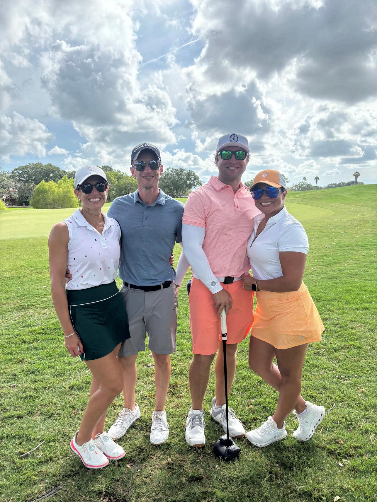 Format: 2 couples to make a 4 person scramble, dancing tees. Each player must use one drive. 9 holes.