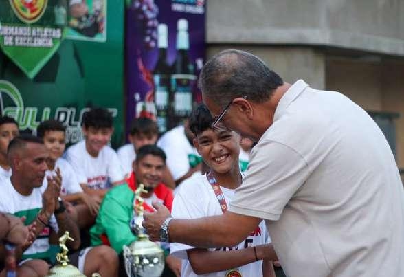 entrega de trofeos y medallas a los talentosos futbolistas.