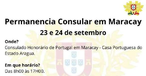 La comunidad portuguesa del estado Aragua recibirá una nueva jornada consular para la tramitación de documentos como Pasaporte y Cartão de Cidadão, dicha permanencia consular está programada del 23 al 24 de septiembre, entre las 8:00 am hasta las 5:00 pm, en las instalaciones del Consulado Honorario de Portugal en Maracay que se encuentra ubicado en la Casa Portuguesa del Estado Aragua, Turmero, municipio Santiago Mariño, estado Aragua. La Cónsul General de Portugal en Valencia, Joana Fialho Pinheiro, estará en esta permanencia consular, apoyando al Cónsul Honorario de Maracay, Marcelino De Canha quien está al frente de la organización de esta actividad, en la que serán tramitados y renovados los Cartão de Cidadão y Pasaporte. Por lo tanto, se debe consulte los requisitos para tramitar estos documentos en la siguiente página: https://valencia.consuladoportugal.mne.gov.pt/pt/assuntos-consulares/servicos-consulares.