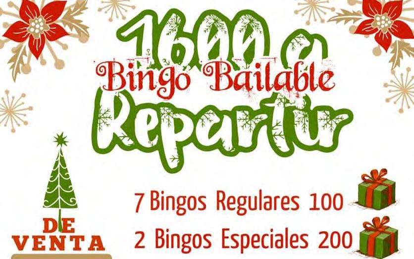 El Bingo Bailable esta pautado para el sábado 03 de diciembre a las 7:30 pm en las instalaciones del Centro Portugués de Punto Fijo, los cartones tendrán un cos to de 10 dólares y la premiación constara de 7 bingos regulares a 100 dólares, 2 bingos especiales a 200 dólares y por último la casa llena a 500 dólares. Habrá venta