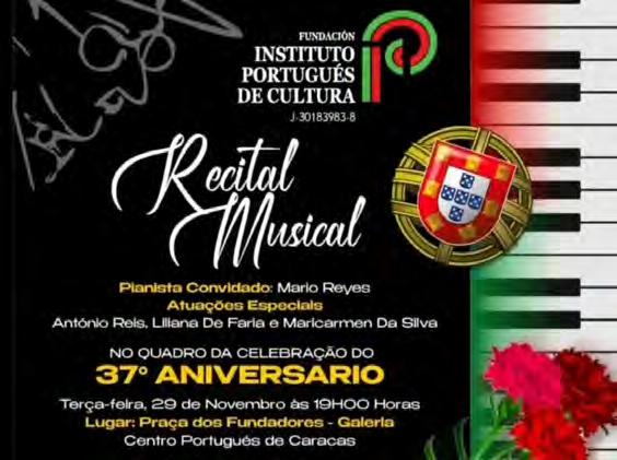 El próximo martes 29 de noviem bre a partir de las 19h00 se va a realizar en los espacios de la Plaza de Los Fundadores, ubicada en el piso uno del Centro Portugués de Caracas, una celebración por los treinta y siete años de trabajo y de dicación del Instituto Portugués de Cultura, el cual está presidido por Fernando Campos.
