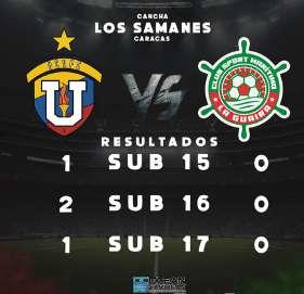 en los tres encuentros que disputaron a las 10:00 a.m., 12:00 p.m. y 02:00 p.m. La categoría Sub-15 y Sub-17 cayeron por la mínima diferencia; sin embargo, la Sub-16 perdió por un 2-0. En ninguno de los encuentros los rojiverdes lograron marcar para achicar diferencias en el marcador y así sumar puntos en la tabla de clasificación de la Liga FutVe Junior.