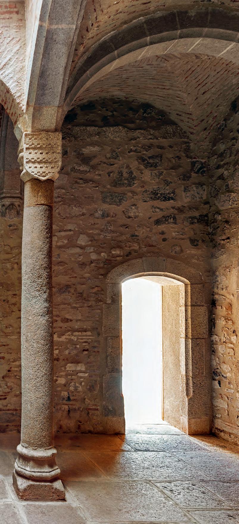 La disposición enfrentada de las estancias permite las relaciones visuales entre ellas y conforma un itinerario continuo secuenciado únicamente por los gruesos umbrales.