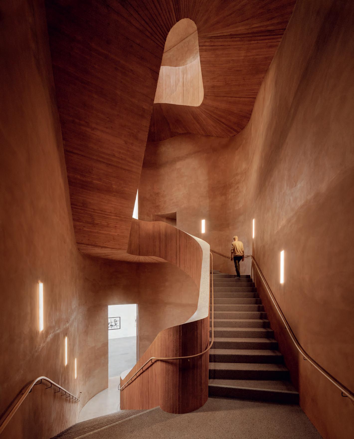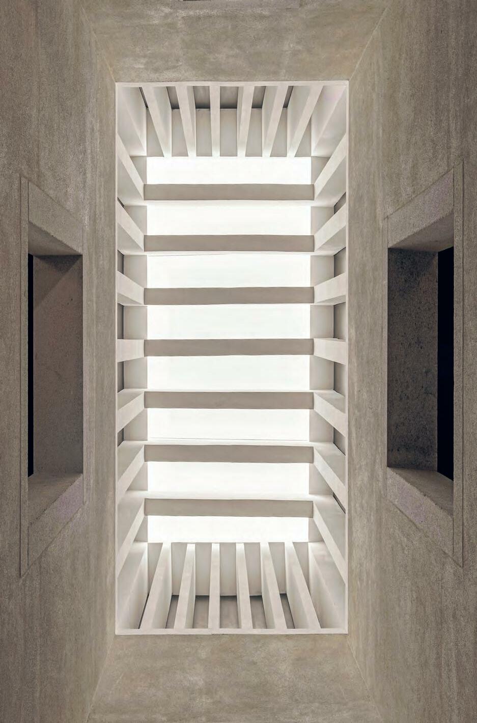 The new structure is fragmented in three parts, responding to the different mass of the buildings in the context and to the limitations imposed by the proximity of a highway. Inside it is possible to walk seamlessly through the collection thanks to two bridges that cross the imposing concrete silos, connecting the extension with the original building. In this way, the silos become an essential component, as much in helping to understand the history of the building as in vertebrating the collection and offering a distinctive exhibition space. In the same way, a sculptural staircase, which evokes the one designed in the original museum project, guarantees the sequential order of the exhibition contents and links up the various stories of the new wing.